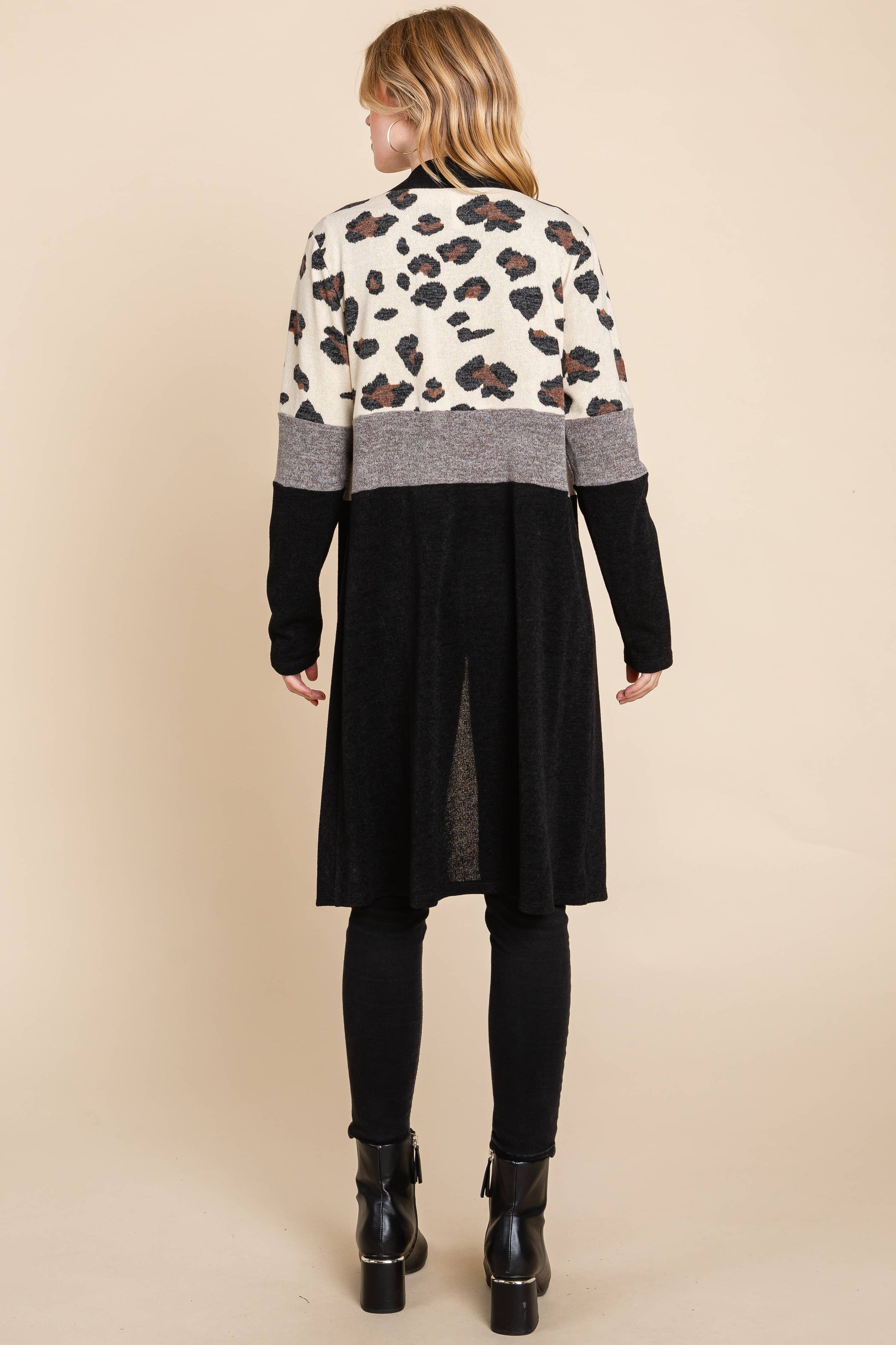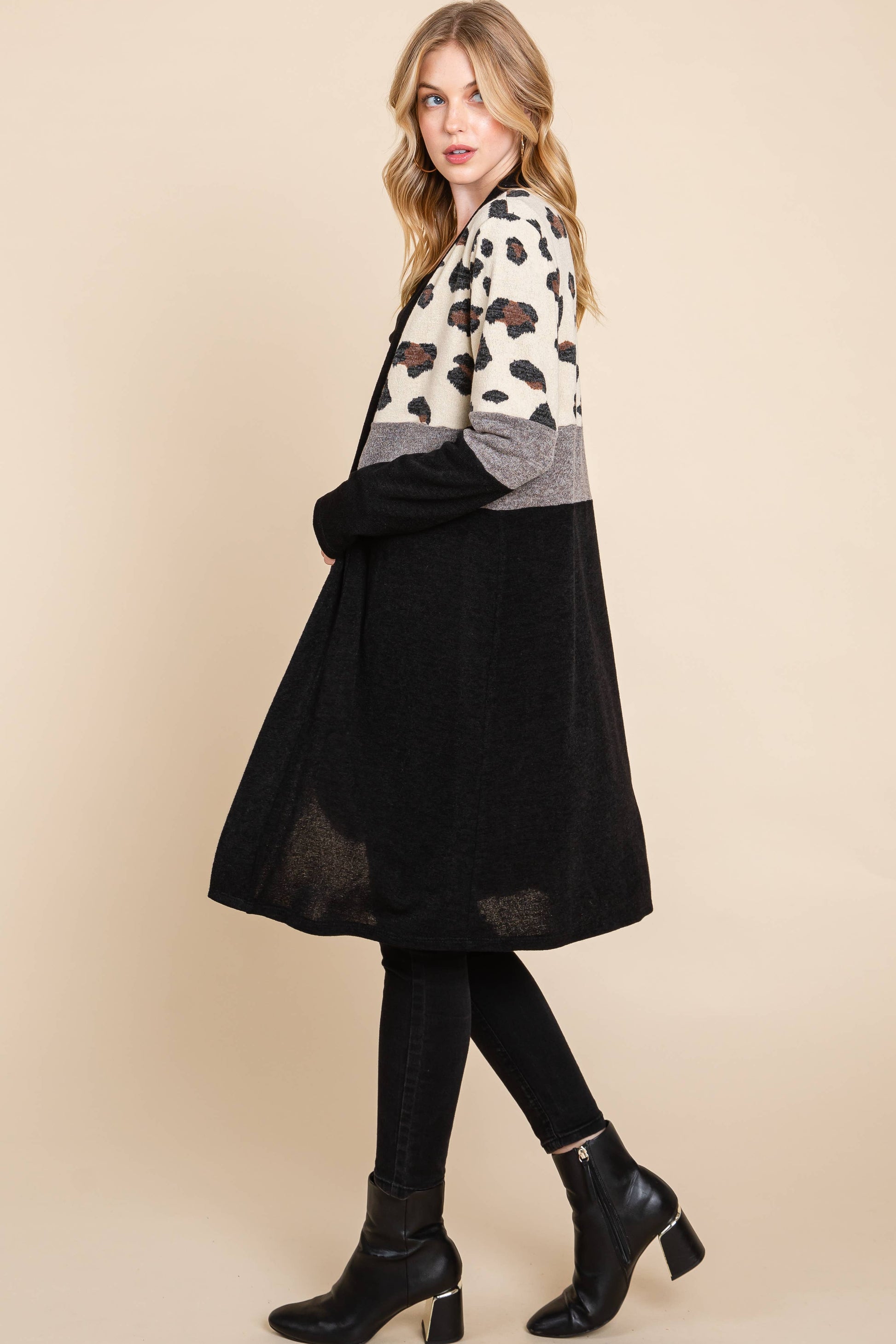 Duster cardigan - black - gray - beige animal